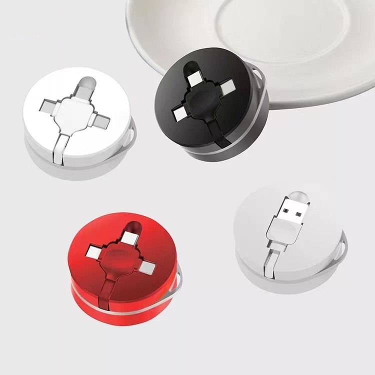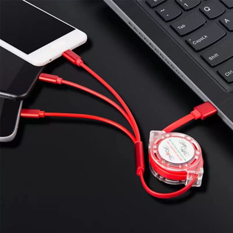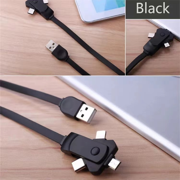 充電ケーブル人気の3in1充電ケーブルです。MicroUSB、Type-C、iPhone用の3つが一体となったタイプになります。ノベルティとして、社名やQRコードを入れることができる大人気アイテムです